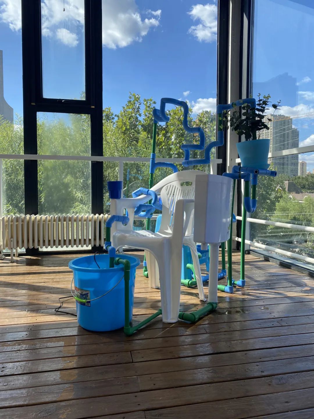 管道作為聯(lián)系日常生活的媒介,每一種用水途徑都意味著不同的敘事。它如此地不引人注目,卻又被家庭賦予不可或缺的重要性。我們將管道系統(tǒng)濃縮在椅子周圍,試圖將人與管道的關(guān)系赤裸地展示出來(lái),揭露水循環(huán)往復(fù)的過(guò)程,重塑人們對(duì)家庭用水系統(tǒng)的認(rèn)知。