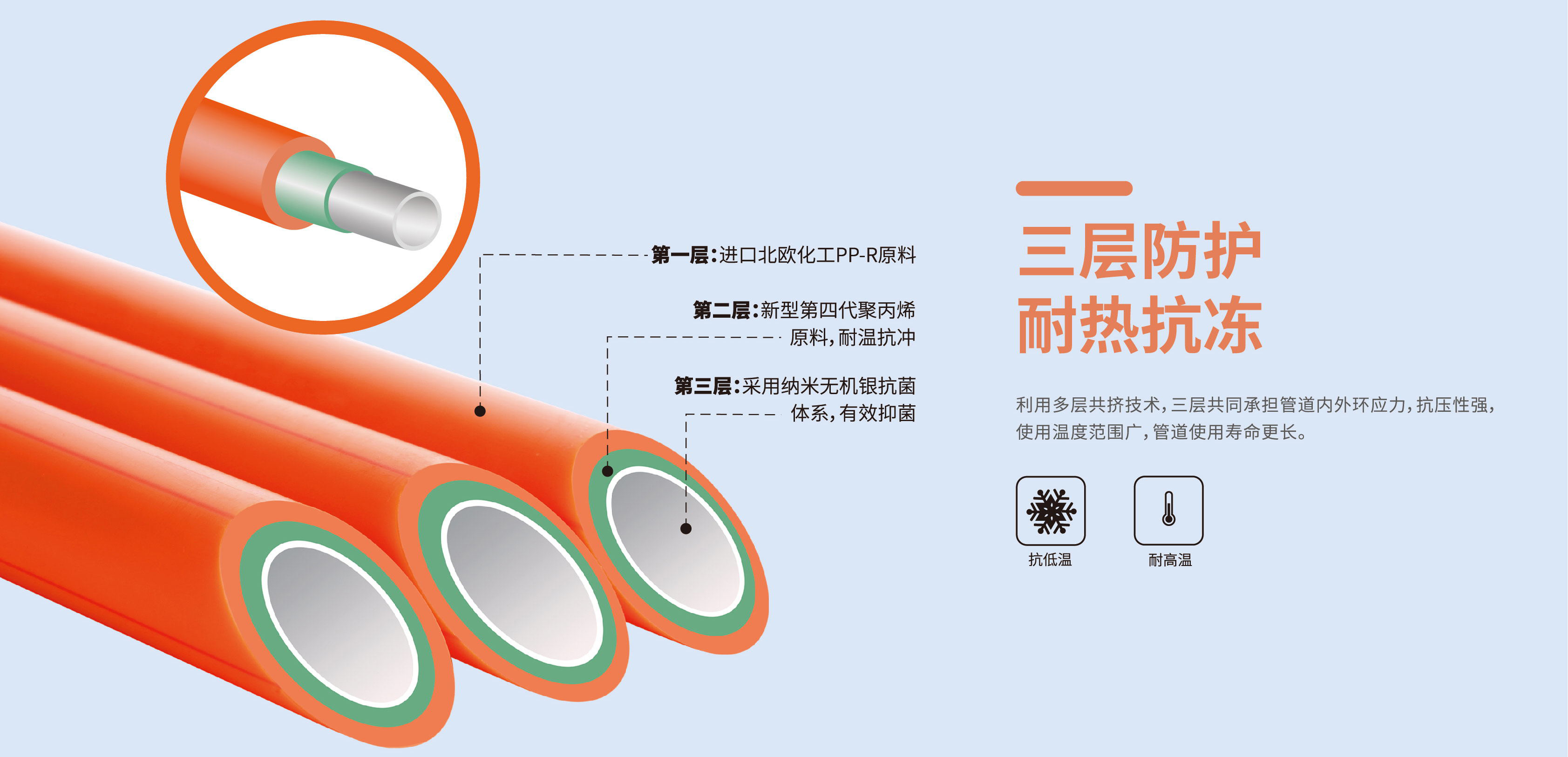 第一層采用進口北歐化工ppr專用原料